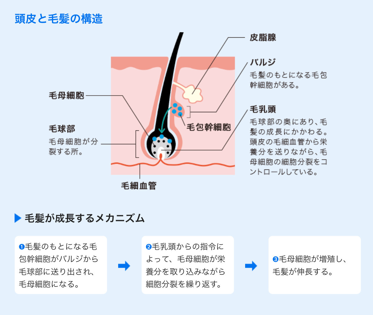 細胞レベルからケアすることで、毛根が再活動し、自然で健康的な髪が育つ土台をサポートします。